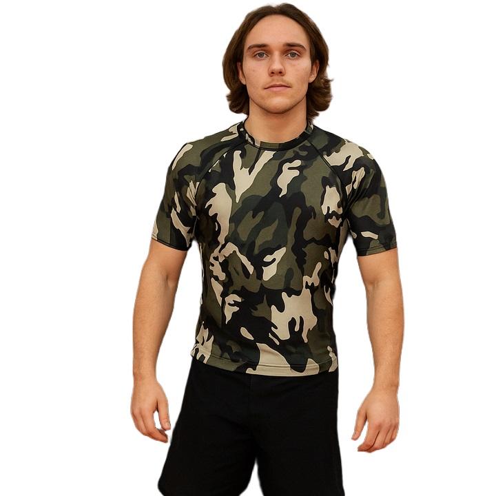 Short sleeve rash guard shirt made from elastic lycra/spandex is breathable and protects your skin. Suitable for Vale-Tudo, MMA, and a wide range of related sports. Fashionable design in different sizes.